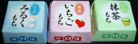 左から「リッチみるくもち」、「濃厚いちごもち」、「宇治抹茶もち」の3種類です。