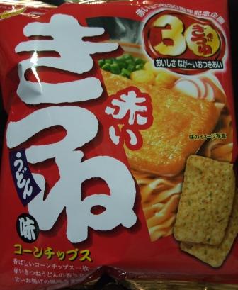 赤いきつねはおあげの形をしたコーンチップスなのですよ。